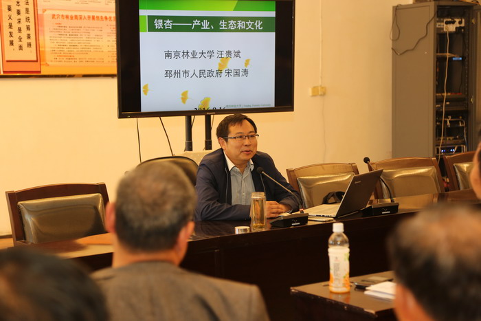 培训会上,来自江苏邳州银杏种植专家宋国涛主讲了银杏采叶园和银杏挂果树的栽培技术及管理。他结合我市实际,就银杏产业发展的前景及银杏采叶园的园地选择、苗木栽植、管理措施及采叶与干制过程,银杏挂果树的肥水管理、病虫害防治及人工授粉等内容进行深入浅出地讲解。